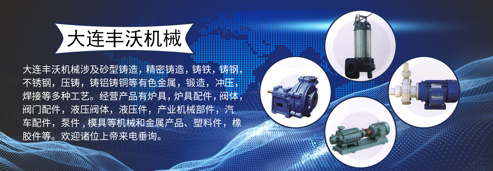 大連豐沃機械有限公司是一家專業從事進出口業務的國際貿易公司。公司下有機械加工實體并有多家長期戰略合作企業。公司從事進出口業務十余年,主要面向日本,兼顧歐美及東盟。以機械制造及金屬制品為主。涉及砂型鑄造,精密鑄造,鑄鐵,鑄鋼,不銹鋼,壓鑄,鑄鋁鑄銅等有色金屬,鍛造,沖壓,焊接等多種工藝。經營產品有爐具,爐具配件,閥體,閥門配件,液壓閥體,液壓件,產業機械部件,汽車配件,泵件,模具等機械和金屬產品、塑料件,橡膠件等。歡迎諸位上帝來電垂詢。